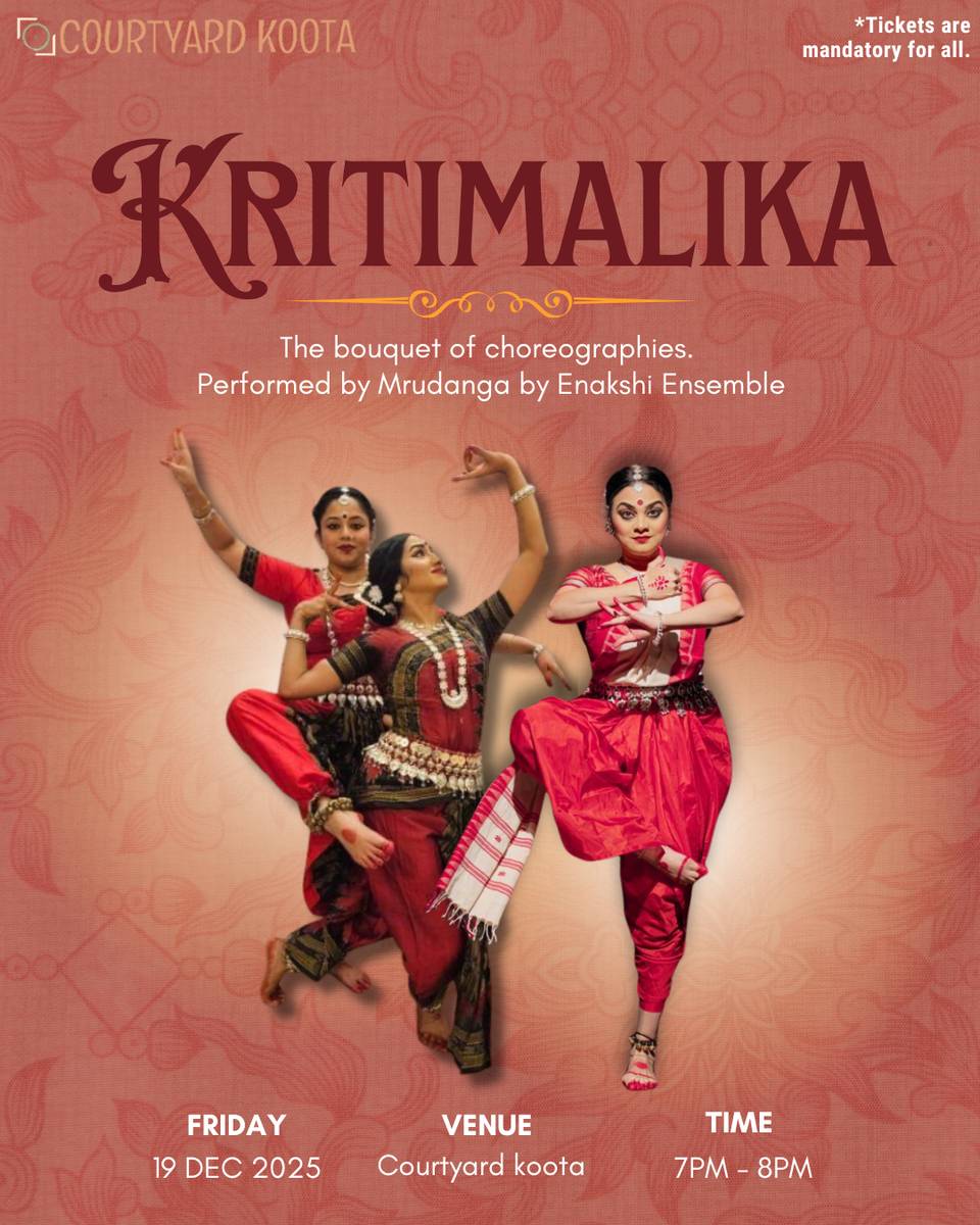 Join us this August for a captivating Mixed Bill performance as part of the Open Day with Attakkalari, presented by the Attakkalari Mobile Academy. This extraordinary event offers a dynamic fusion of performances that transcend contemporary experiences, emotions, and historical reflections. Tailored to the unique ambiance of Courtyard Koota, this performance masterfully combines the traditional martial art of Kalaripayattu with contemporary dance, promising an unforgettable artistic experience.