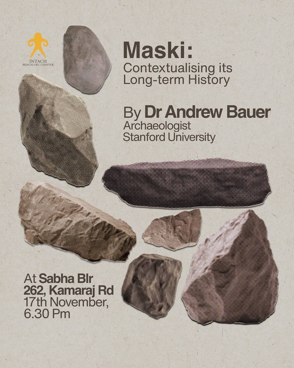 Dr. Bauer will present findings from over 20 years of archaeological research in northern Karnataka, focusing on the long-term history of Maski (Raichur District)—known for its Ashokan Edict and earlier occupations—and the megalithic site of Hire Benakal (Koppal District). His talk explores how these sites are understood within the broader cultural landscapes of ancient activities and practices.