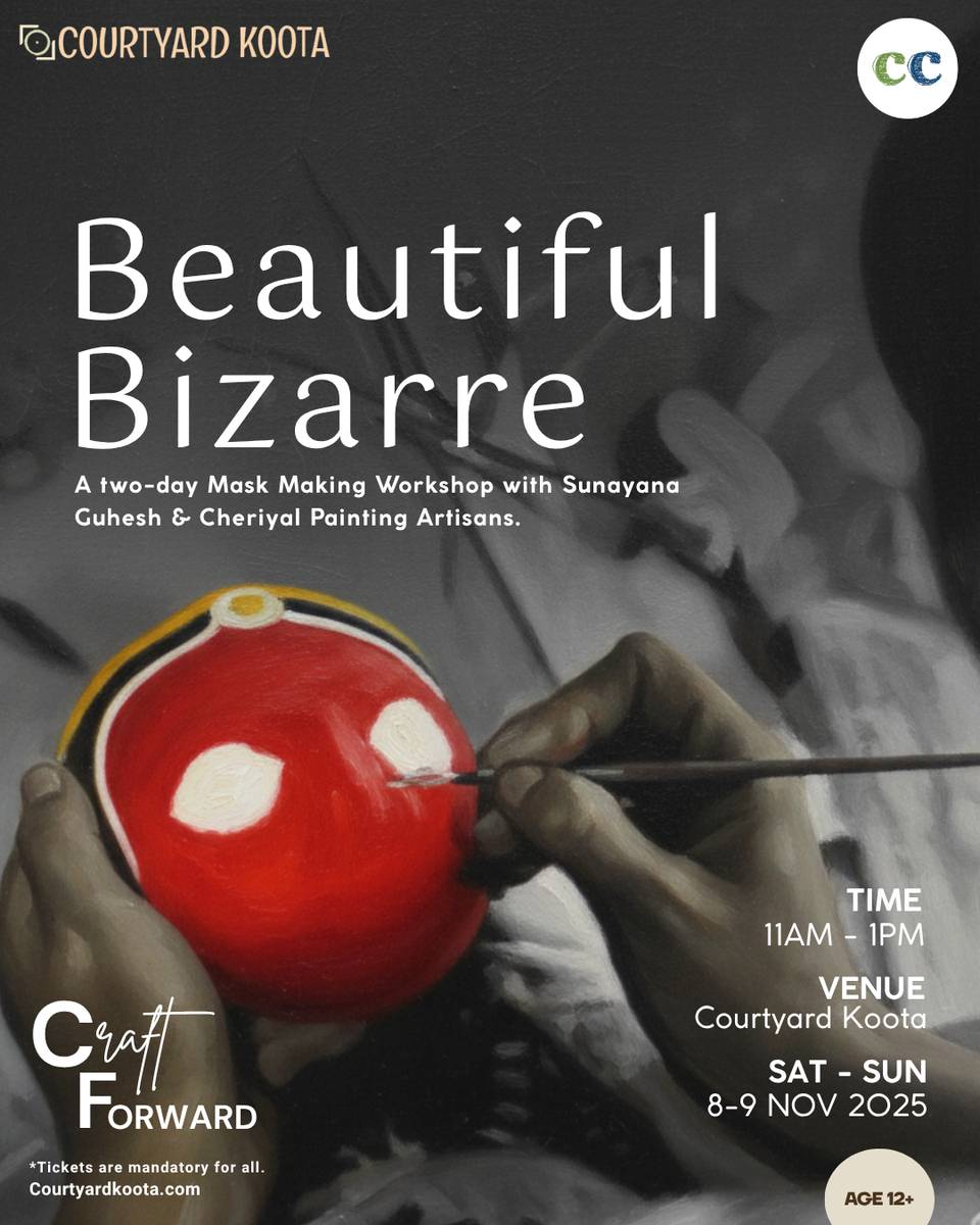 Enter the imaginative world of mask-making with artist Sunayana Guhesh and Cheriyal artisans from Hyderabad. Using pre-moulded mask bases and quick-dry materials, participants will sculpt, paint, and exaggerate features to invent their own “beautifully bizarre” alter ego. Traditional techniques meet contemporary play as the session explores how distortion and fantasy can express hidden aspects of identity.