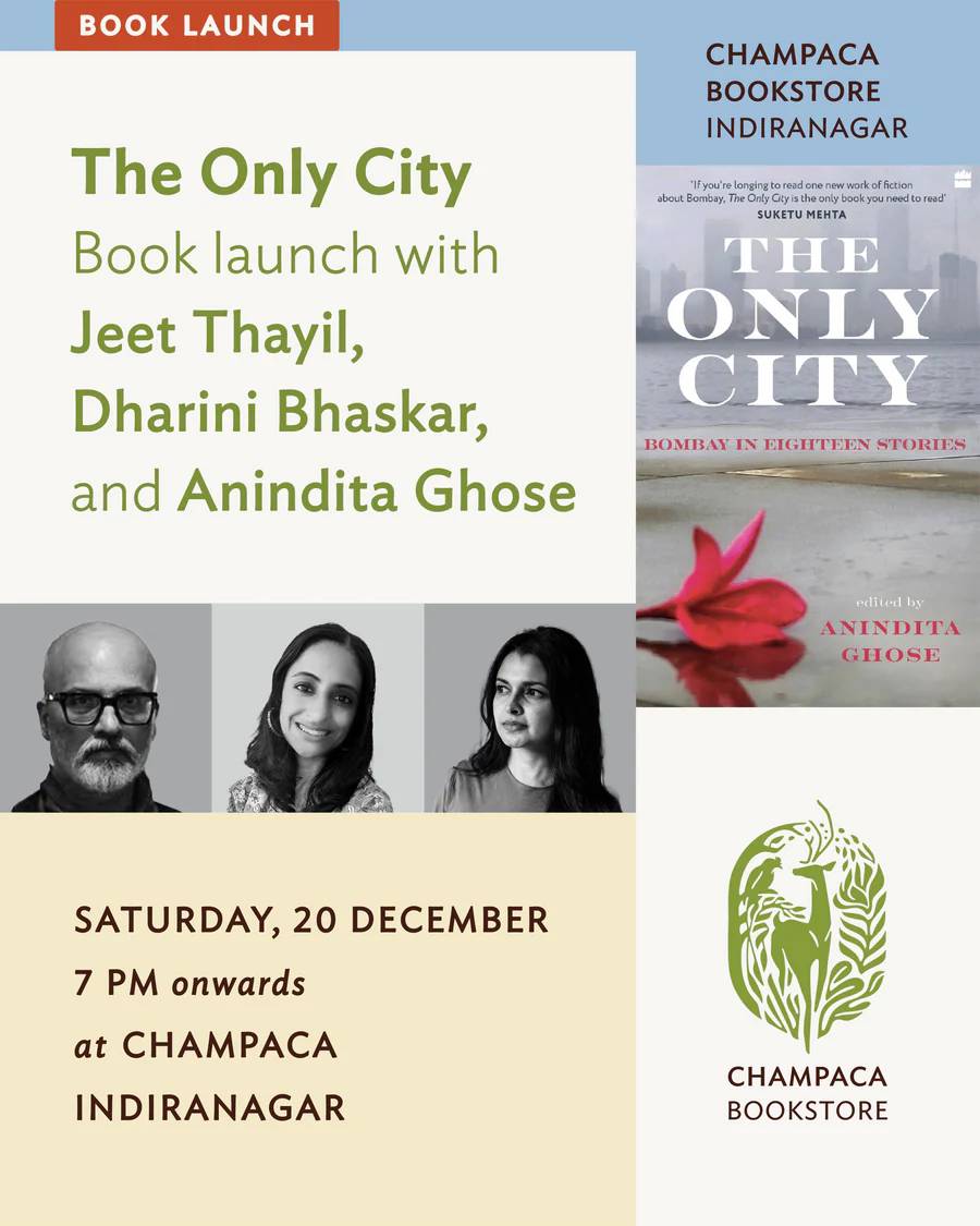 We are delighted to host the launch of The Only City: Bombay in Eighteen Stories at Champaca Bookstore, Indiranagar. Edited by writer and journalist Anindita Ghose, this new anthology collects eighteen short stories that capture Bombay through many lives and vantage points.
