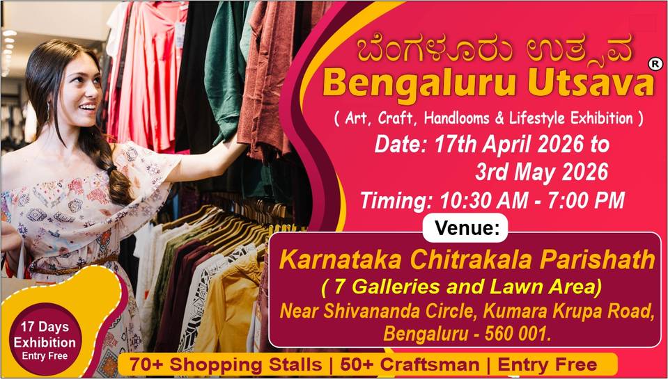 The Indian Artisan Bazaar will be held from February 13 to March 1, 2026, at Karnataka Chitrakala Parishath, Bengaluru, across its seven galleries and lawn area near Shivananda Circle. The 17-day exhibition will run daily from 11 am to 7 pm, with free entry for visitors.