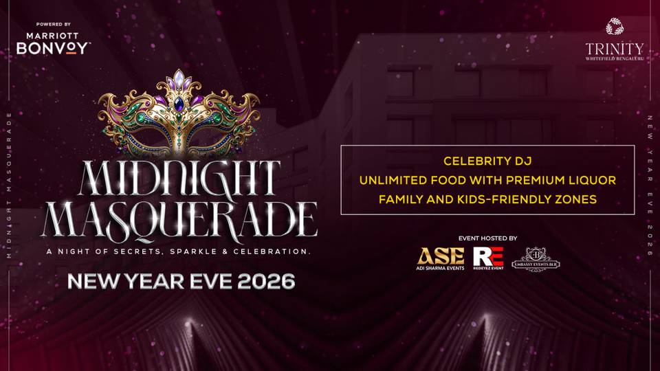 Midnight Masquerade β New Year's Eve 2026 @ Trinity Whitefield, Bengaluru. Powered by Marriott Bonvoy