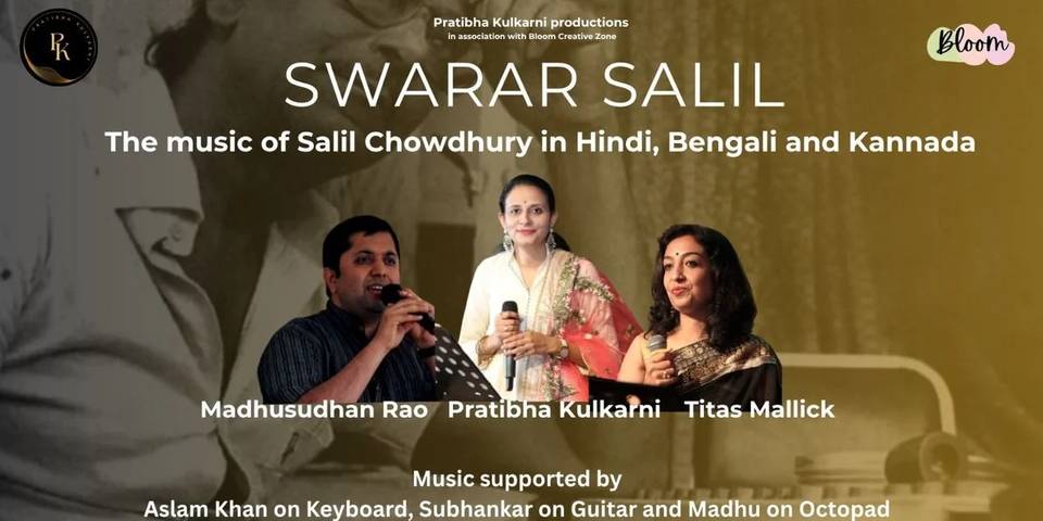 Step into an enchanting evening dedicated to the legendary composer Salil Chowdhury, whose melodies have transcended generations and languages. Experience his musical gems in Hindi, Bengali, and Kannada, brought to life by the soulful voices of Madhusudhan Rao, Pratibha Kulkarni, and Titas Mallick.