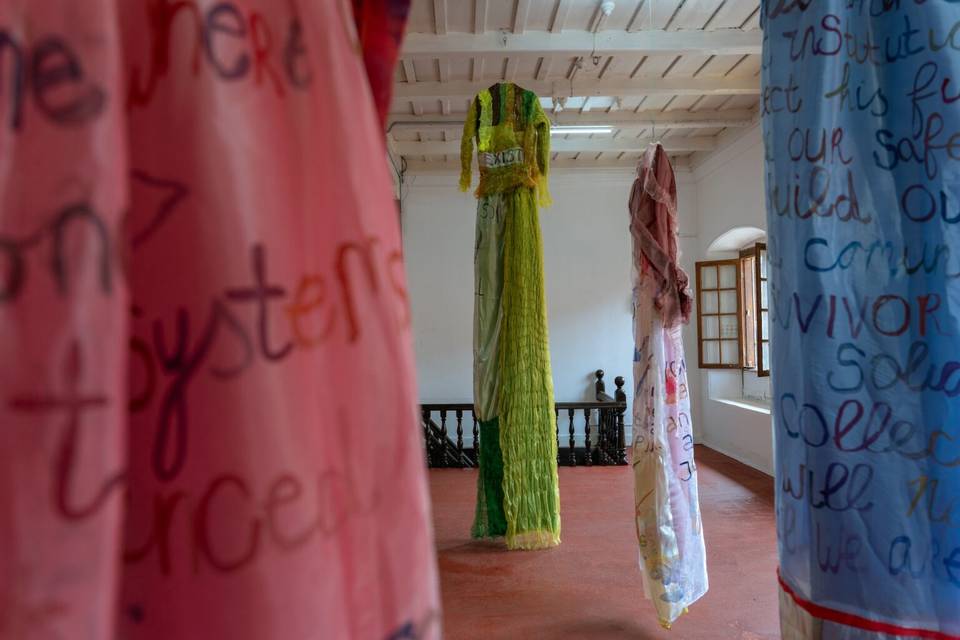 Following its showcase at the Dutch Warehouse in Fort Kochi, MAP brings these works to Bengaluru. Sewn in silk and organza, the garments hide activist reflections—phrases hand-painted across luminous textiles, stitched together into forms that hold both vulnerability and strength. These works explore anger as a potent force for transformation; becoming vessels to hold and give form to rage. They create a space where visitors, especially those who have endured violence, are acknowledged and embraced. By foregrounding emotion as both personal and political energy, eisma invites viewers to reconsider how vulnerability, resistance, and healing can coexist.